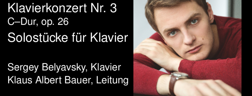 Am heutigen Abend steht Sergei Sergejewitsch Prokofjew, ein sowjetischer Pianist und Komponist im Mittelpunkt. Sein Klavierkonzert Nr. 3 – C-Dur, op.26 ist beliebt beim Publikum, das sich auf ein echtes Juwel und ein Wiedersehen mit dem mehrfach preisgekrönten Ausnahmepianisten Sergey Belyavsky freuen darf.